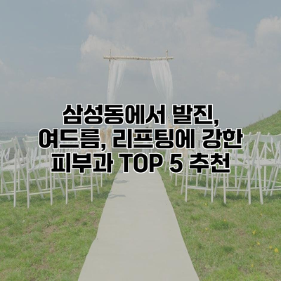삼성동에서 피부과를 선택하는 것은 여러분의 피부 건강에 매우 중요한 영향을 미칠 수 있습니다. 여기 소개한 TOP 5 병원은 모두 높은 만족도와 효과를 자랑하며, 각 병원은 리프팅, 여드름, 발진 치료에 특화되어 있습니다. 여러분의 피부 고민에 맞는 병원을 선택하여 자신감 있는 모습으로 변화해 보세요.