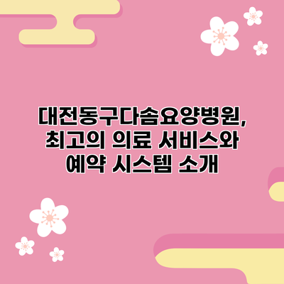 ✅ 대전동구다솜요양병원의 예약 시스템을 지금 바로 알아보세요.