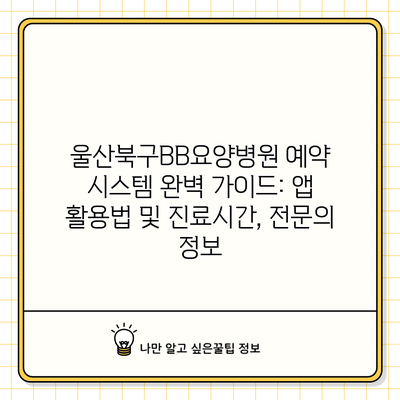 울산북구BB요양병원 예약 시스템 완벽 가이드: 앱 활용법 및 진료시간, 전문의 정보