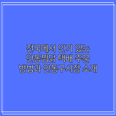 이제 여러분도 집에서 간편하게 안동찜닭을 즐길 수 있는 방법을 알아보겠습니다. 많은 찜닭 전문점에서는 택배 서비스를 제공하고 있습니다.