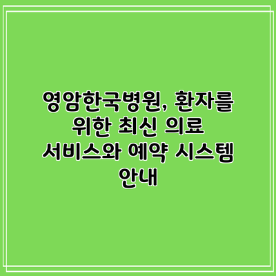 영암한국병원, 환자를 위한 최신 의료 서비스와 예약 시스템 안내