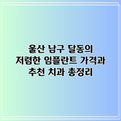 달동 지역에서는 임플란트의 평균 가격이 종류별로 다르기 때문에, 선택할 때 이를 참고해야 한다는 점을 강조하고 싶어요. 다음은 울산 남구 달동에서의 주요 임플란트와 크라운 가격 정보입니다.