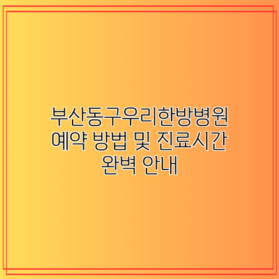 부산동구우리한방병원 예약 절차를 간편하게 알아보세요.