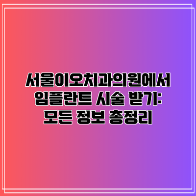 서울이오치과의원에서 임플란트 시술 받기: 모든 정보 총정리
