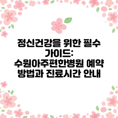 정신건강을 위한 필수 가이드: 수원아주편한병원 예약 방법과 진료시간 안내