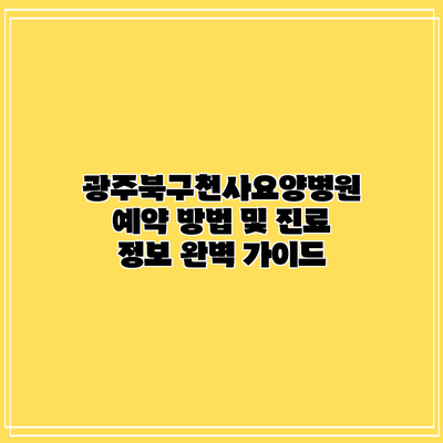 광주북구천사요양병원은 다양한 의료 서비스를 통해 환자들에게 최상의 건강 관리를 제공하고 있습니다. 이곳의 예약 시스템은 매우 효과적이며, 모바일 앱과 더불어 편리하게 사용할 수 있는 방법을 제공합니다. 그럼, 예약 방법 및 진료 정보에 대해 자세히 알아보도록 하겠습니다.