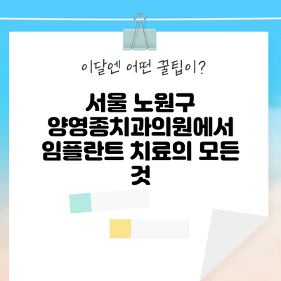 임플란트 치료에 대해 고민하고 계신가요? 오늘 저는 서울 노원구에 위치한 양영종치과의원에서 제공하는 임플란트 치료에 대한 정보를 자세히 살펴보겠습니다. 이 글에서는 임플란트의 정의, 비용, 치과 예약 방법, 그리고 양영종치과의원의 영업시간 등을 포함하여 여러분이 치과 치료를 준비하는 데 필요한 모든 정보를 제공합니다.