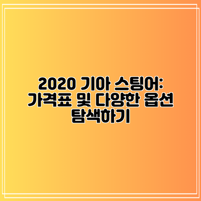 기아 스팅어는 주행 성능과 세련된 디자인으로 많은 이들의 관심을 받고 있는 스포츠 세단이에요. 2020년형 스팅어는 다양한 엔진 옵션과 혁신적인 기술을 통해 운전의 즐거움을 극대화했답니다. 이번 포스트에서는 2020 기아 스팅어의 가격표와 옵션을 자세히 알아보도록 할게요.