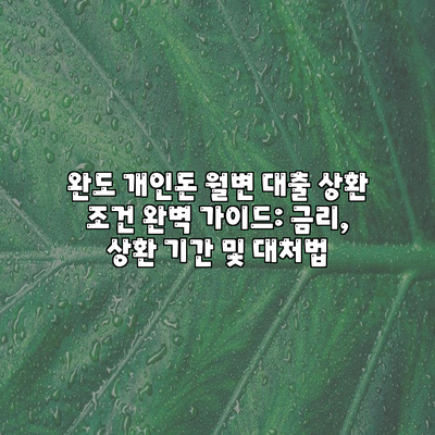 갑작스러운 자금이 필요할 때 많은 사람들이 고민하게 되는 것이 바로 개인돈 대출입니다. 특히 완도 개인돈 월변 대출은 빠른 자금 조달이 가능하다는 장점이 있지만, 그만큼 상환 조건이나 금리에 대한 이해가 부족하면 큰 어려움에 부딪힐 수 있습니다. 이번 글에서는 완도 개인돈 월변 대출의 상환 조건, 금리, 연체 시 대처법 등을 상세히 설명해드릴게요.