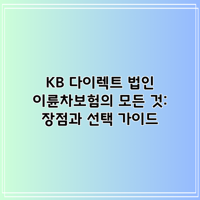 A3: KB 다이렉트는 신뢰성, 맞춤형 서비스, 24시간 고객센터 운영, 다양한 할인 혜택 등을 제공하여 법인 운영자들에게 많은 장점을 제공합니다.