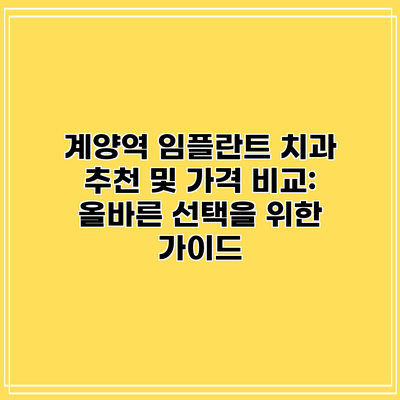 치아 건강은 우리의 삶의 질에 큰 영향을 미치기 때문에, 임플란트 시술을 고려하게 되는 경우가 많아요. 특히, 계양역 부근에서 신뢰할 수 있는 임플란트 치과를 찾고 있다면 꼭 읽어야 할 내용이에요! 이번 포스트에서는 계양역에서 추천하는 최고의 임플란트 치과 두 곳을 비교하여 각각의 장단점 및 가격 정보를 상세히 안내할게요.