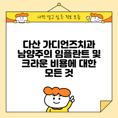 💡남양주의 임플란트 및 크라운 비용을 자세히 알아보세요! 💡