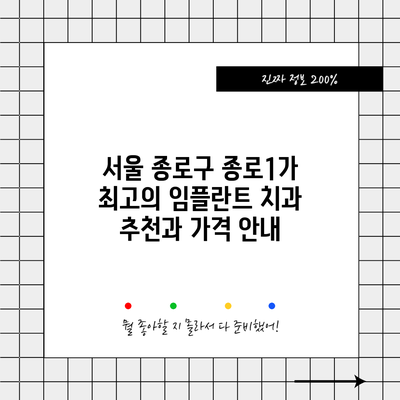 서울 종로구 종로1가 최고의 임플란트 치과 추천과 가격 안내