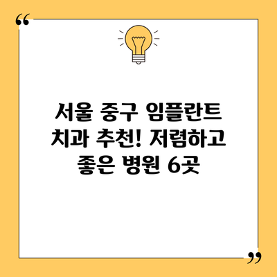 서울시 중구에서 임플란트를 고민하고 계신가요? 임플란트 치료는 치아 기능을 회복할 수 있는 효과적인 방법으로, 이러한 치료를 받기 위해서는 신뢰할 수 있는 병원을 선택하는 것이 매우 중요해요. 오늘은 서울 중구에서 추천하는 저렴하고 전문적인 임플란트 치과 6곳을 소개해드릴게요.