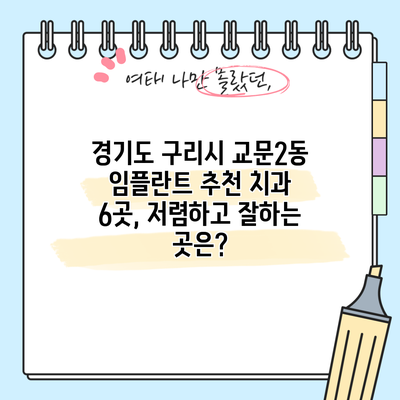 이제 구체적으로 경기도 구리시 교문2동에서 임플란트 치료를 잘하는 치과를 추천해드릴게요. 각 병원의 위치, 특징, 진료 과목과 후기 등을 상세히 설명드리겠습니다.