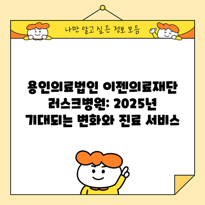 용인의료법인 이젠의료재단 러스크병원은 2025년에 더욱 발전된 진료 서비스를 제공할 준비를 하고 있습니다. 치료의 접근성과 질을 향상시키기 위해 최선을 다하는 이 병원은, 예약 홈페이지와 어플리케이션을 통해 환자들에게 보다 편리한 진료 예약 시스템을 제공합니다.