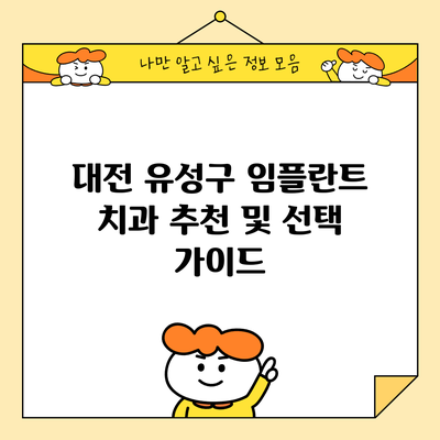 대전 유성구에서 임플란트를 고려하고 있다면 여러 치과의 정보와 후기를 바탕으로 비교하고 선택하는 것이 중요해요. 치과 선택은 단순히 가격만이 아니라 품질과 환자 관리에도 큰 영향을 미친답니다. 신중한 선택을 통해 여러분의 건강한 치아와 미소를 되찾으시길 바랍니다.