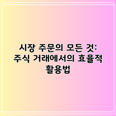 시장 주문의 모든 것: 주식 거래에서의 효율적 활용법