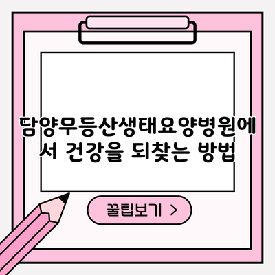 담양무등산생태요양병원에서 건강을 되찾는 방법