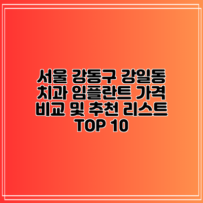 서울 강동구 강일동에서 임플란트를 고려하고 있다면, 여러 치과의 가격과 후기를 비교하는 것이 무척 중요해요. 임플란트를 통해 치아의 기능을 회복하는 것은 많은 분들에게 큰 의미가 있습니다. 따라서 적절한 치과를 선택하는 데 도움이 될 다양한 정보를 제공해 드릴게요. ✅ 치아 뼈이식 비용과 절차에 대한 궁금증을 해결해보세요. 👉 치아 뼈이식 비용 알아보기 임플란트 치료의 중요성 임플란트는 치아의 뿌리 … Read more