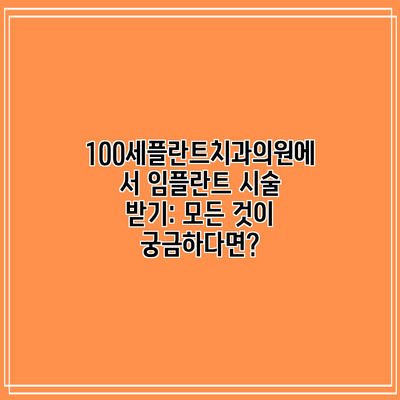 100세플란트치과의원에서 임플란트 시술 받기: 모든 것이 궁금하다면?
